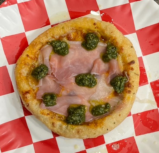 Order › Pesto & Prosciutto Image 1 of 1 Pesto & Prosciutto $13.00 Organic San Marzano tomato base, fresh mozzarella, finished with dollops of pesto andtomato sauce. EVOO brushed crust. Quantity: Add To Cart Added! Organic San Marzano tomato base, fresh mozzarella, finished with dollops of pesto andtomato sauce. EVOO brushed crust.